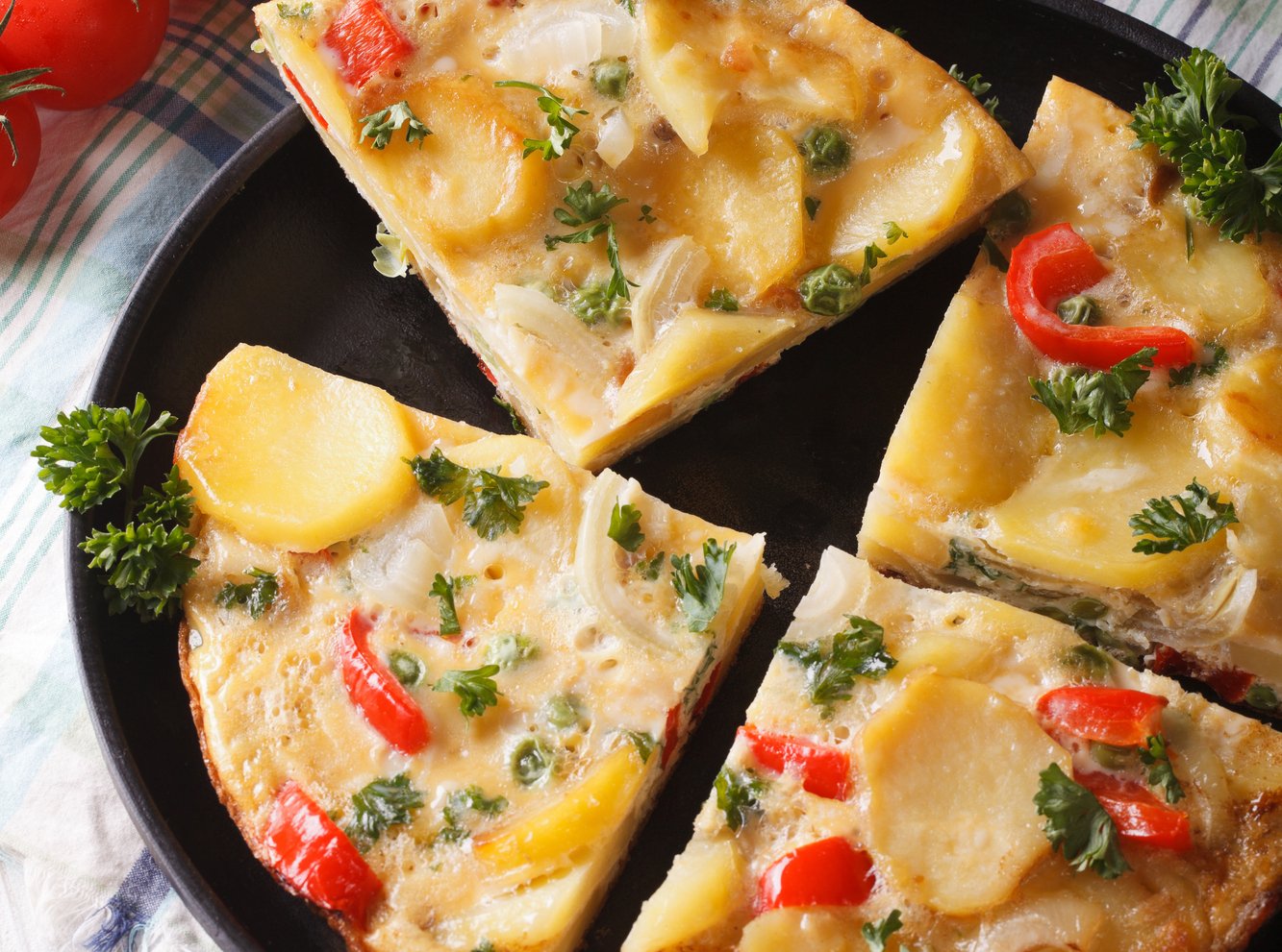 Яйца, картофель, лук — вот три базовых ингредиента, необходимых для приготовления испанской тортильи. И хотя традиционалисты считают добавление лука гастрономическим преступлением, можно найти рецепты с добавлением разных овощей, например сладким перцем и кабачками. А мясоеды не отказываются от дополнительной порции свиной колбасы чоризо или хамона.