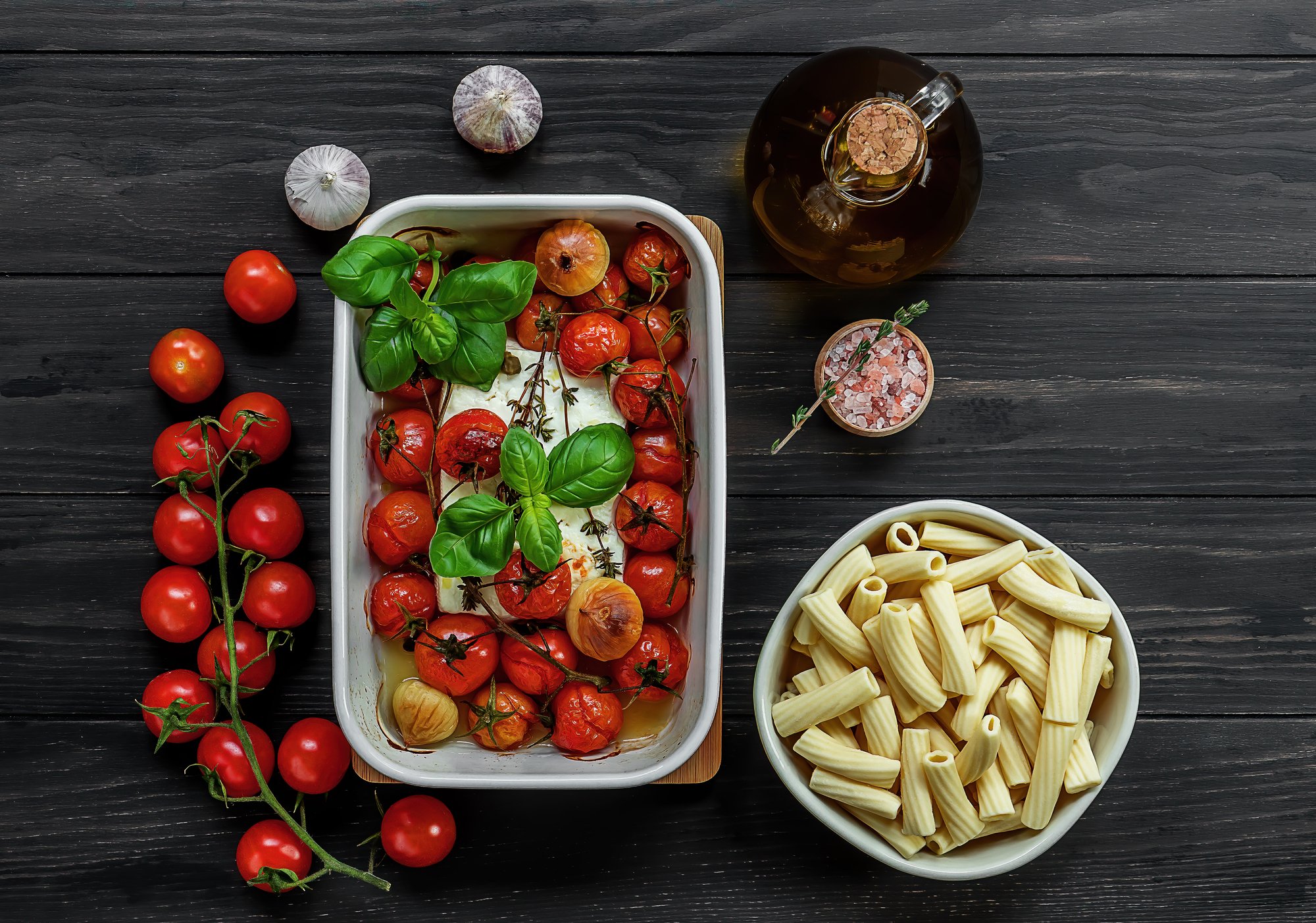 Запеченная фета с макаронами