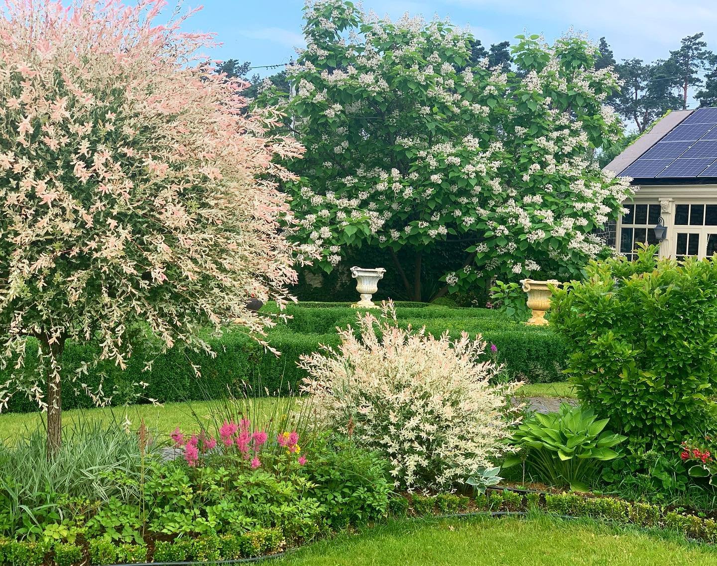 У меня, как правило, есть сезонные фавориты. Я могу увлечься, например, пионом. Оп! — я хочу и белый, и розовый… Потом, например, о, гортензия. И появилось много у нас гортензий с большими соцветиями разных цветов. Как-то лаванда несколько сезонов была моей фавориткой. Я ее и размножала, и черенковала, и пыталась сеять, ставила разные эксперименты. Меня увлекает то растение, которому я уделяю больше внимания, больше экспериментов. Потом уже вроде бы разобралась с этим — переходим к другому (смеется).