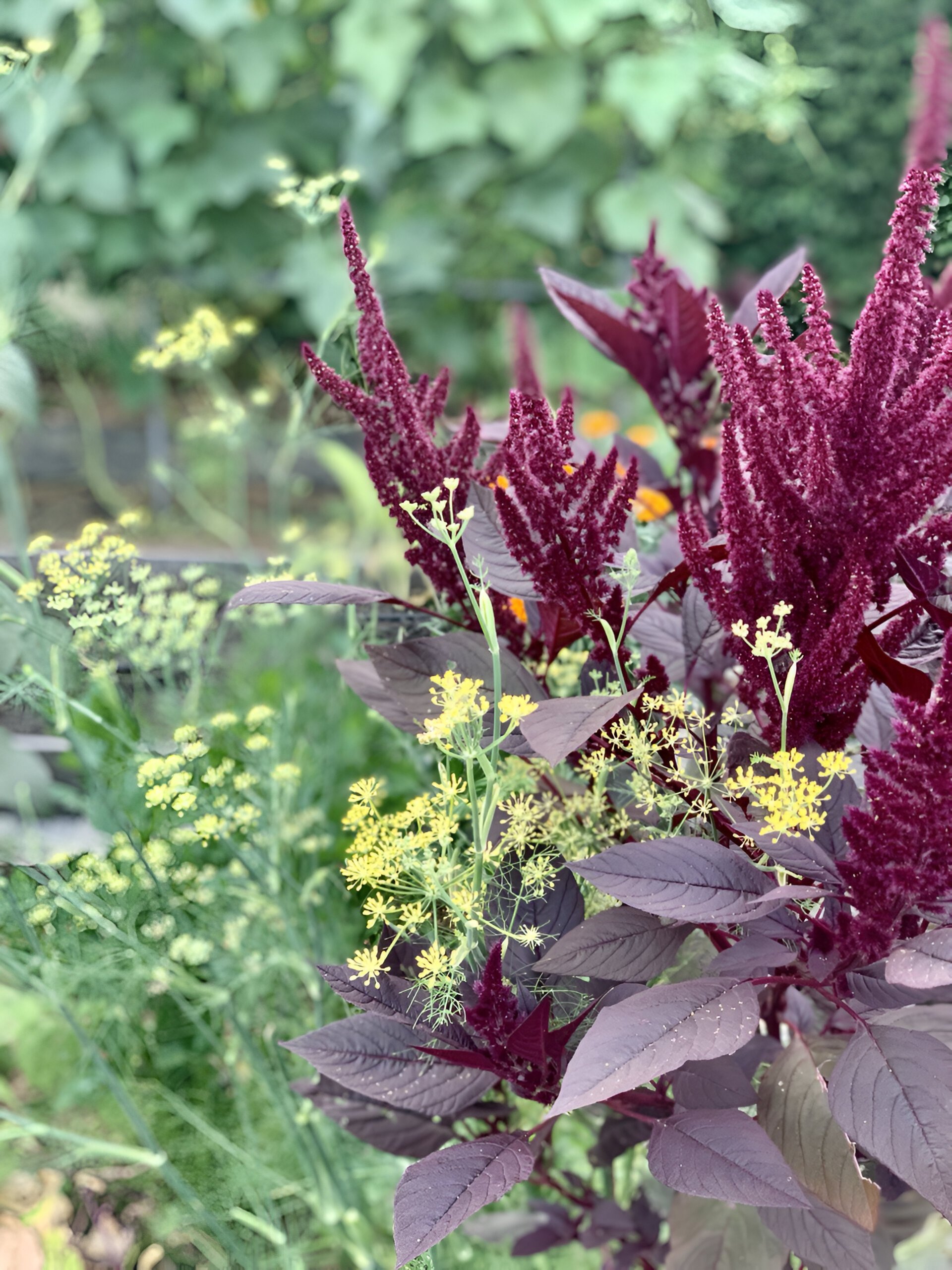 Я всегда на огороде сажаю несколько высоких растений, ну, например, амарант сею — он такой высокий, красный. У него красивые большие «венички». Достаточно трех амарантов на огороде для вау-эффекта, потому что они видны издалека, и они очень хороши.