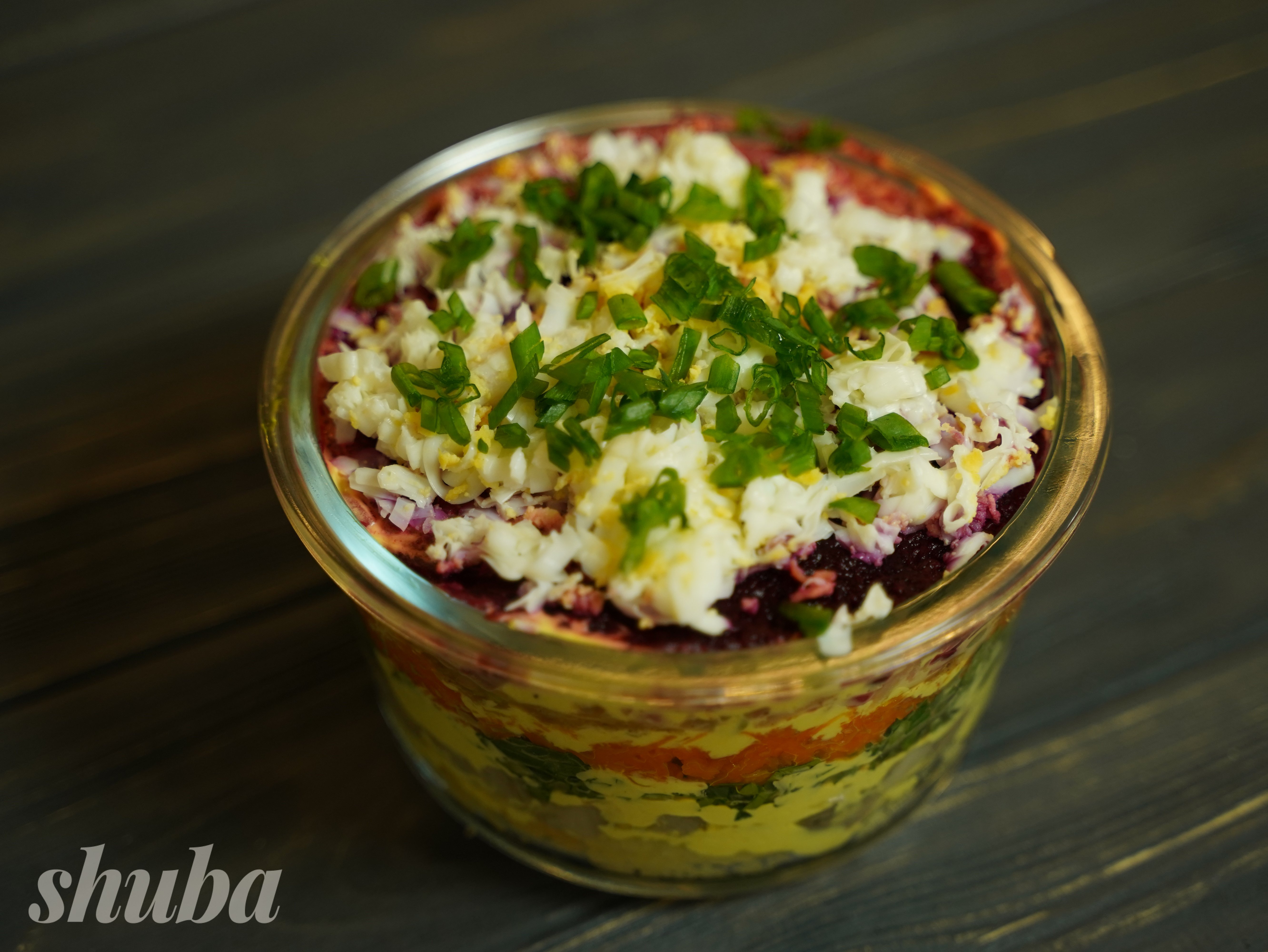 Интересный салат «Селедка под шубой» — это славная «Шуба», но немного иначе. В состав входят яйца и яблоки, которые становятся вкусным дополнением к салату, который и так не оставляет равнодушных!