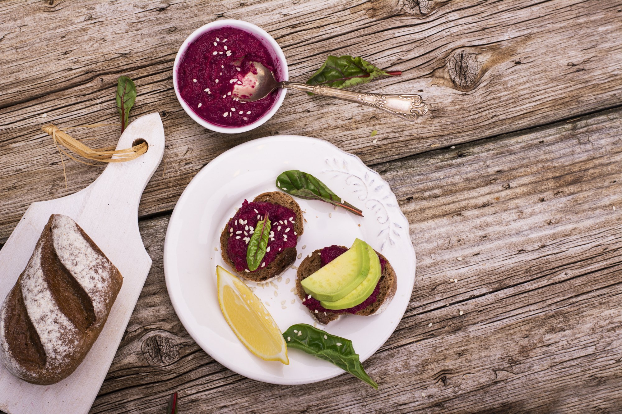 Свекольный хумус с ржаным хлебом