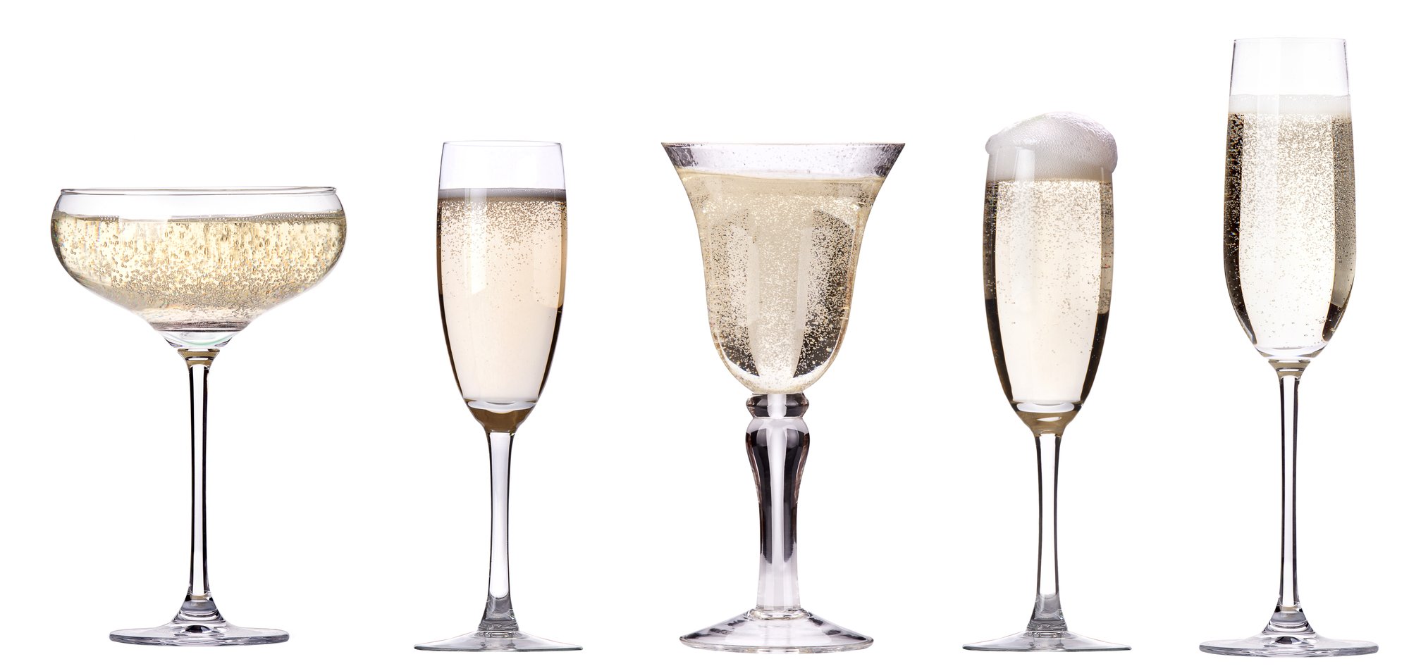Бокалы для шампанского бывают разных форм. Различают такие виды как флейта, купе, тюльпан и другие.