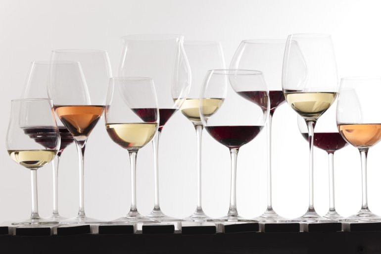 Бокал для розового вина тоже существует. Это нечто среднее между бокалами для белого и красного.