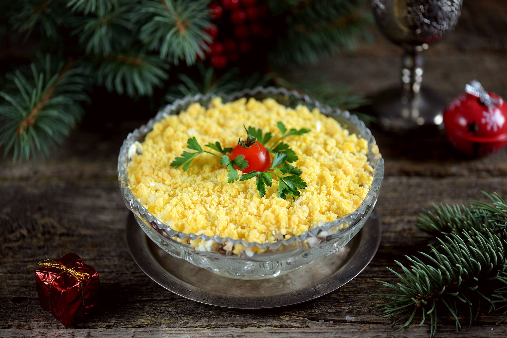 Горят краски новогоднего стола. Витает в комнате аромат волшебного праздника. Вполголоса, но уверенно, играет музыка. Словно в сказке загадочно блестят елочные фонарики... Чего не хватает, чтобы последним мазком закончить эту удивительную картину? Точно! Не хватает именно того, чего мы ожидаем весь год — разноцветной тарелки с новогодними салатами! Классическая «Мимоза» ждет вас.