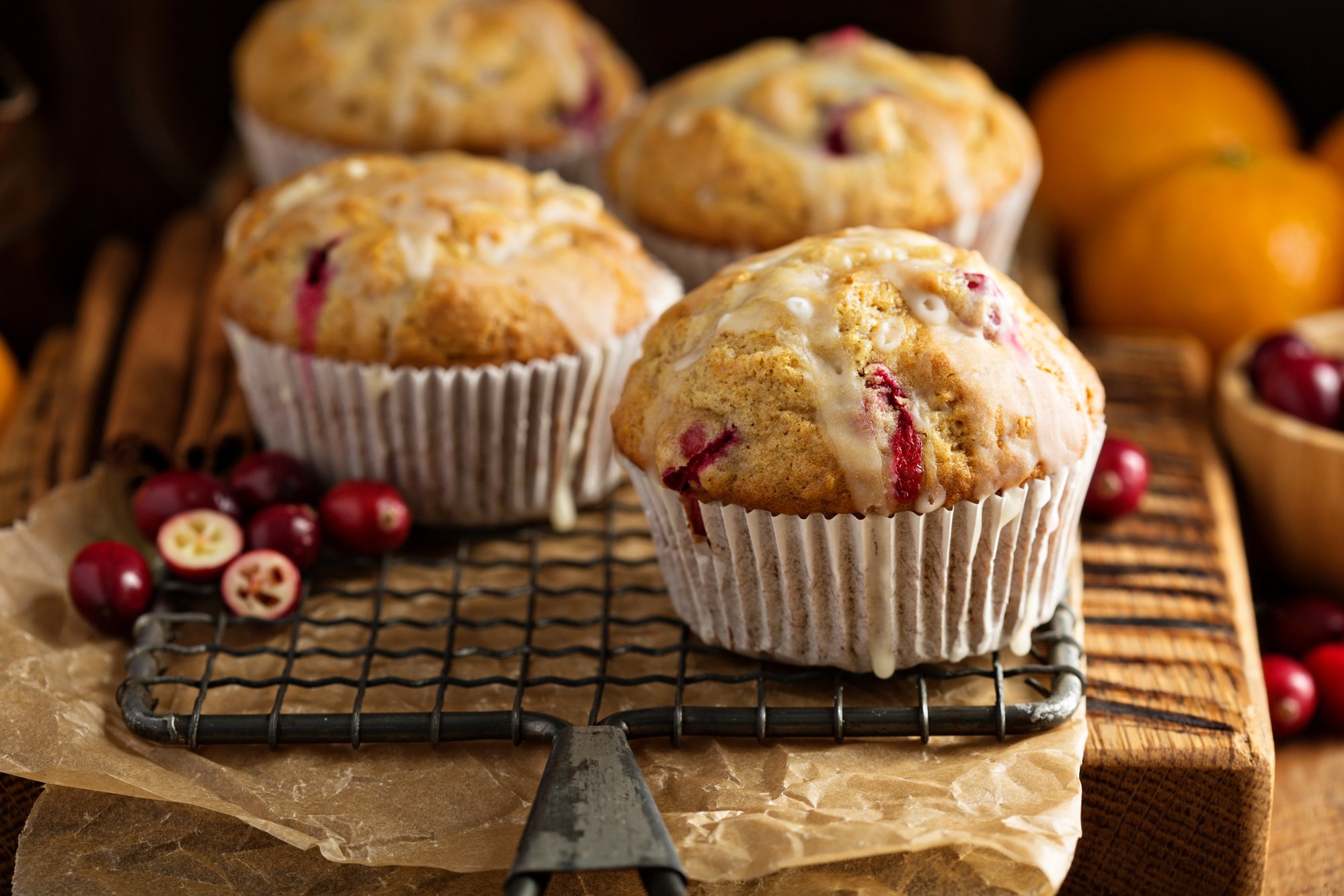 Эти пушистые кексы наполнены свежим вкусом клюквы и апельсина, а также натурально подслащены! Советуем использовать цельнозерновую муку и греческий йогурт для приготовления этого рецепта. Также можно добавить орешки и посыпать кексы сахарной пудрой.