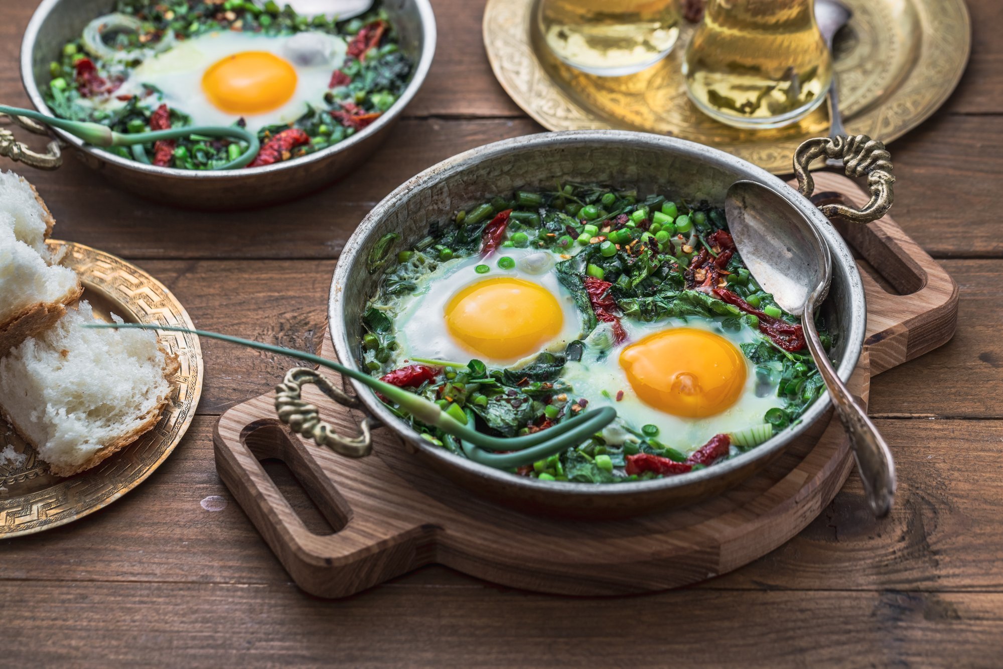 На выходные всегда есть немного больше времени на приготовление завтрака, поэтому грех не попробовать эту зеленую шакшуку. Блюда из яиц и зеленых овощей — это хороший источник белка, витаминов и минералов.