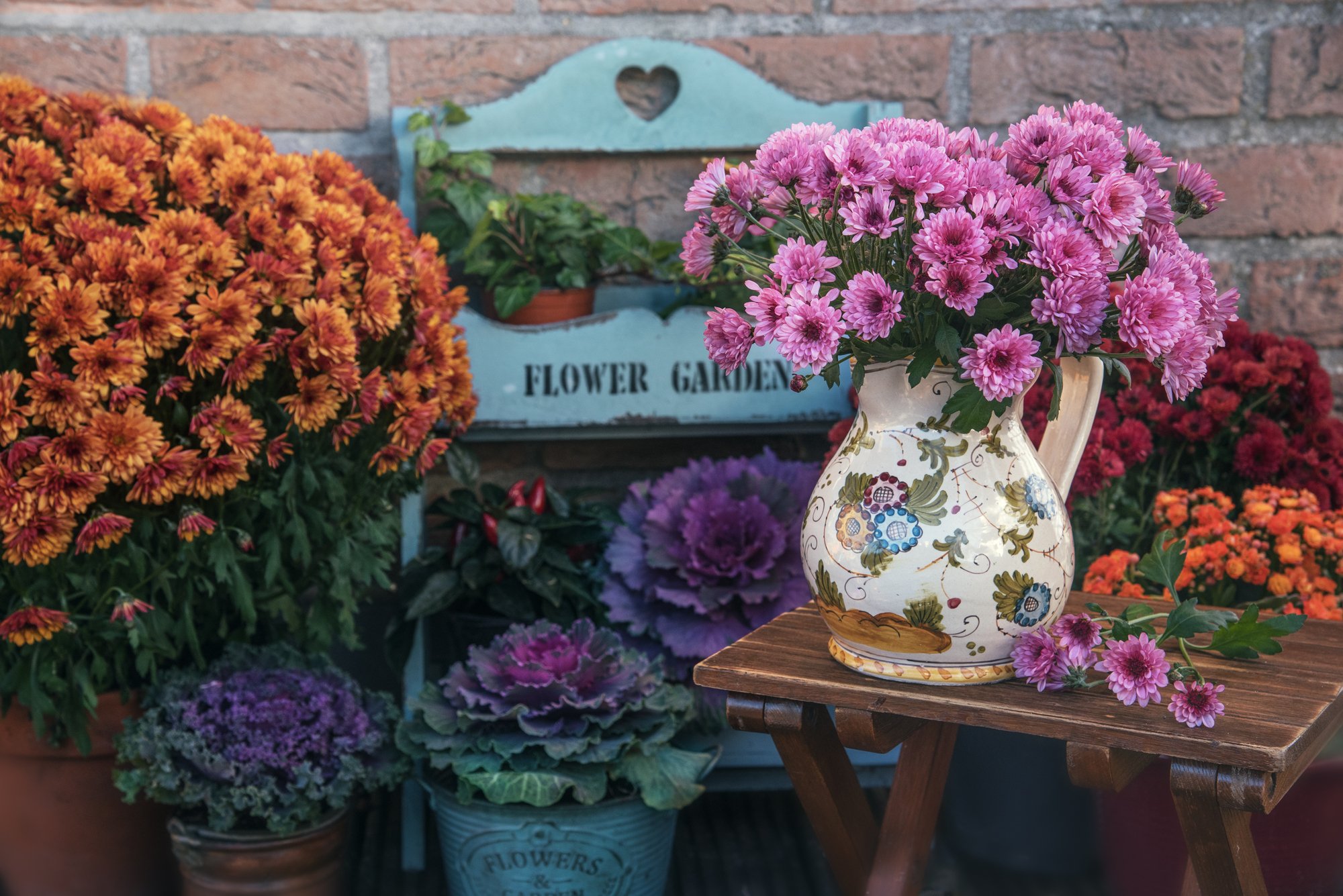 В сочетании, например, с деревянной оградой балкона или террасы, в разных оттенках коричневого или белого цвета, они создают атмосферную осеннюю композицию, которая будет радовать глаз жителей и прохожих.