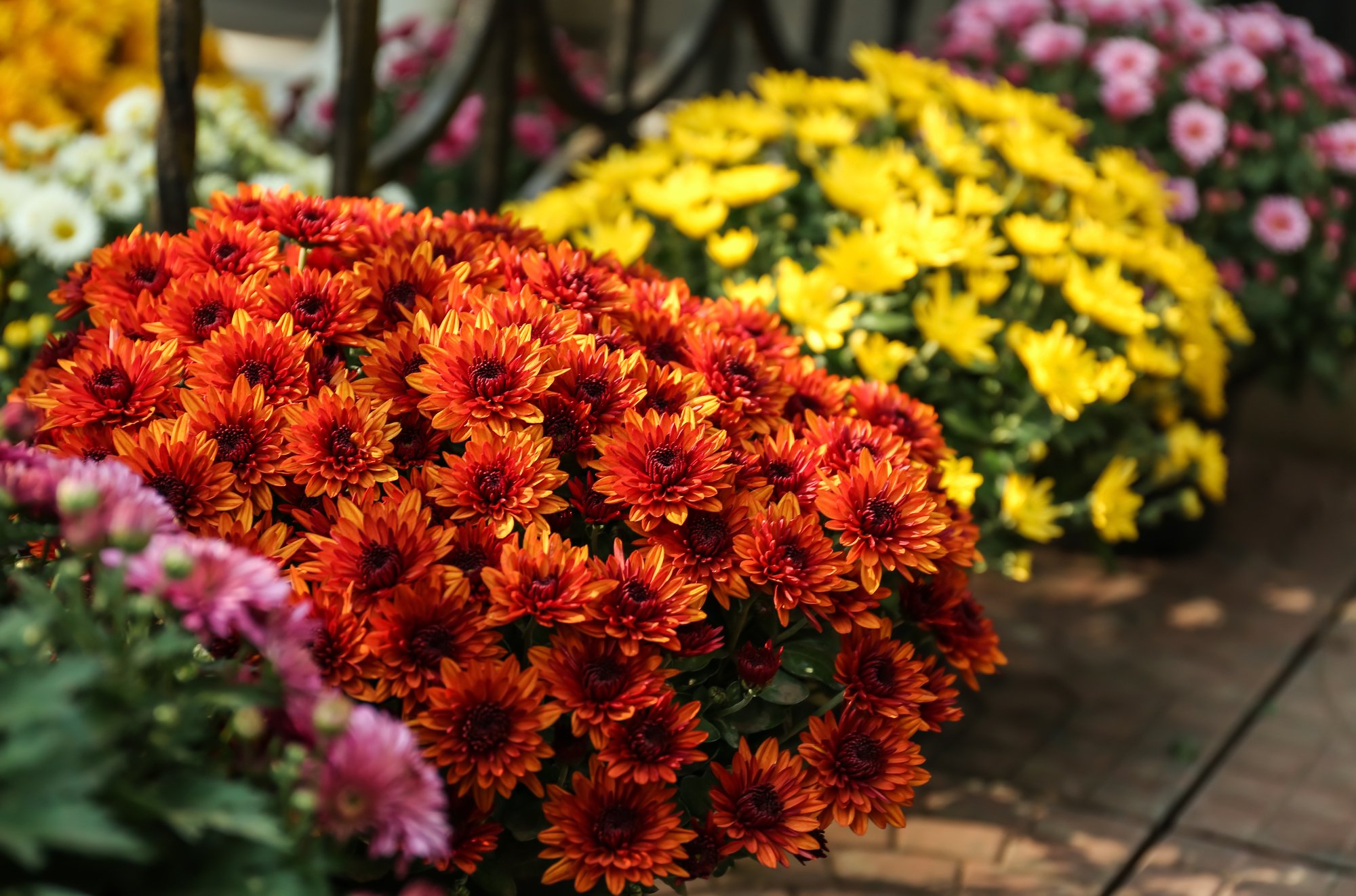 Хризантемы продаются в различных цветах, так что вы можете дать волю своей фантазии и создать на балконе интересные разноцветные композиции.
