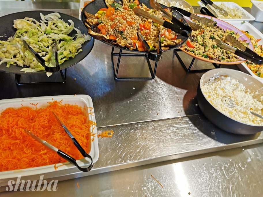 Для детей-аллергиков существует отдельный стол. Дети берут тарелки, выстраиваются в очередь и сами набирают себе еду. Можно положить любую порцию, можно сходить за добавкой. Детей учат, что нужно набирать столько еды, сколько ты съешь.