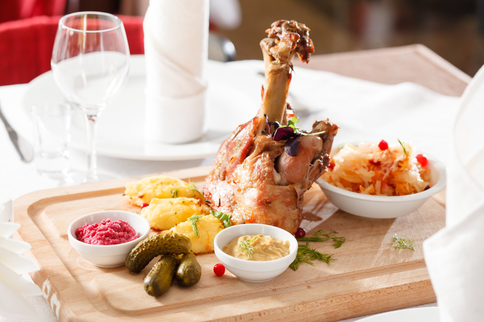 «Был Иваном, а стал господином!» — под таким лозунгом рулька, она же голонка или айсбайн, вошла в кухню народов Европы. Когда-то жареное вепрево колено было всем, что оставалось охотникам от добычи в барских лесах. А когда блюдо довели до идеала — оно оказалось на столе императора Карла IV! К блюду с такой историей и вина особенные.