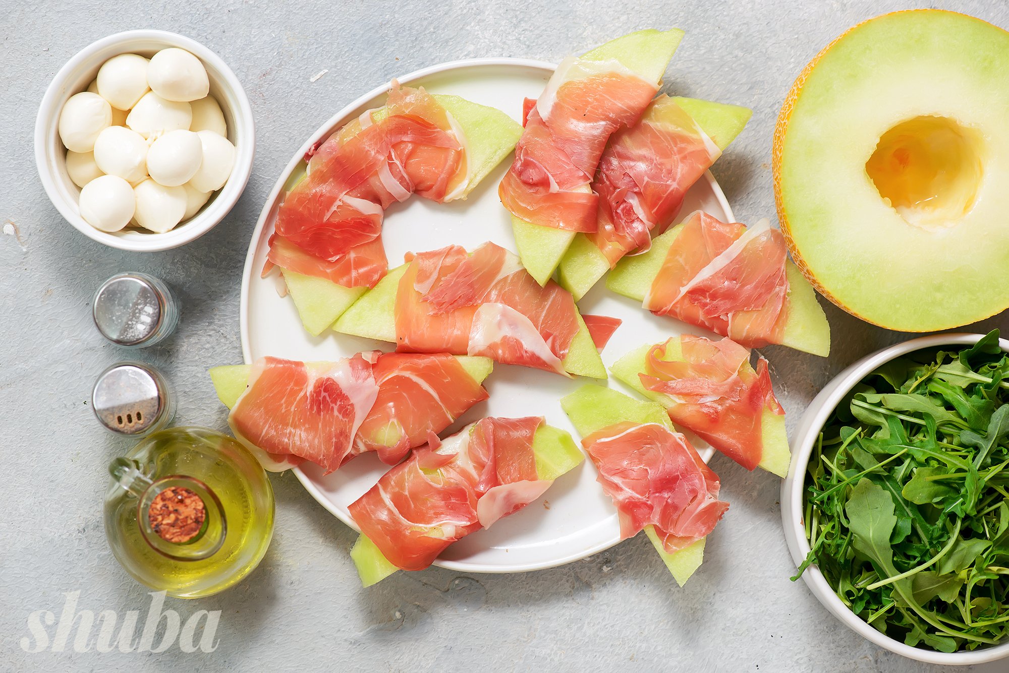 Рецепт салата с дыней, моцареллой и прошутто