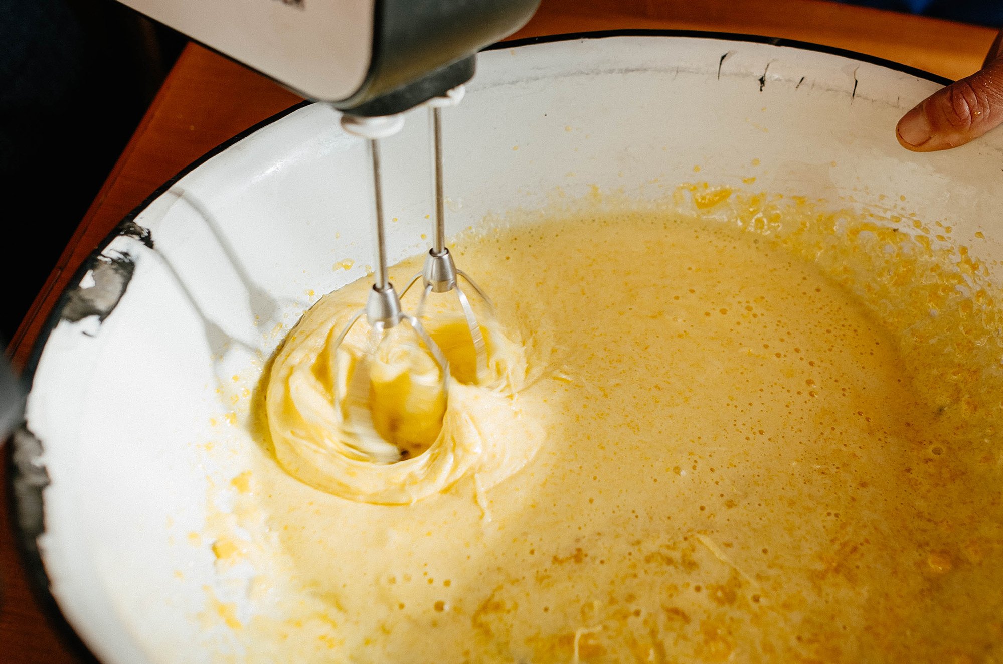 Коли опара вибродить, починаємо підсипати борошно й замішувати тісто. Воно має бути пухким і не забитим, але не прилипати до рук. Вимішуйте вручну 15 хвилин, у тістомісі — до 10 хвилин. Можна підлити трохи олії, щоб тісто не так липнуло до рук.